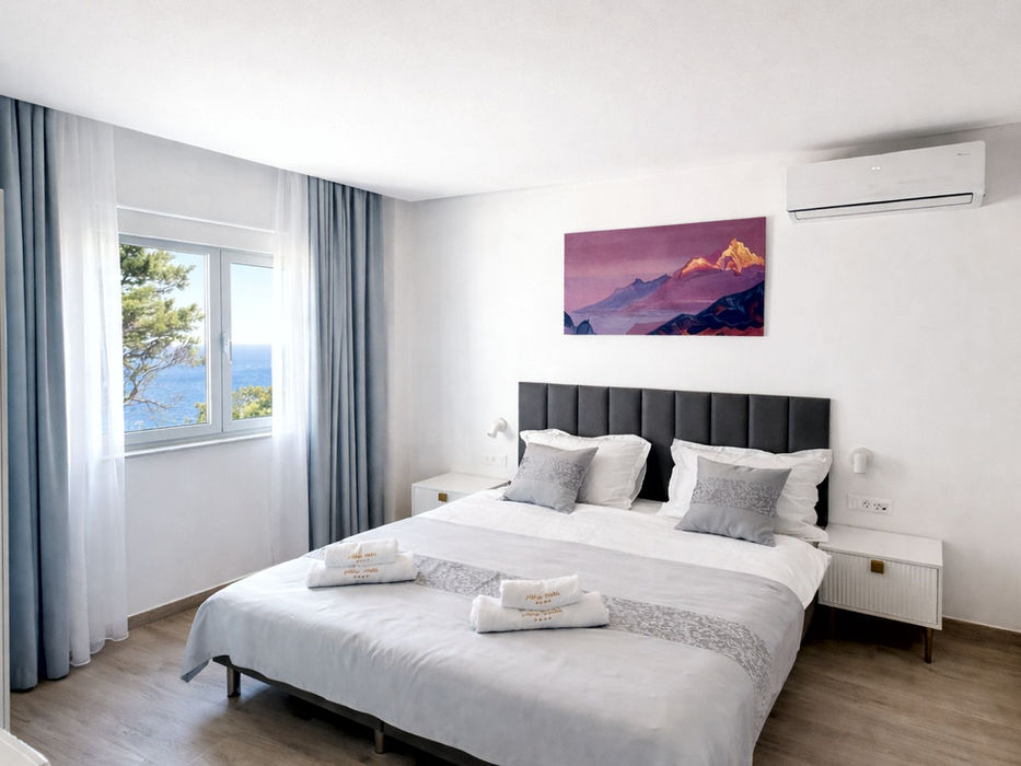 Relax by the sea-view infinity pool, where the water seems to merge with the horizon. Comfortable sun loungers are available free of charge, creating the perfect spot to unwind, read, or simply enjoy the Adriatic views. The sea is only 10 meters away.. Complimentary beach towels are provided for your comfort throughout your stay.